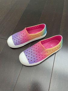 Fast delivery full service customer support. The slip on shoes are made from single-bandage synthetic upper EVA outsole. Brand new toddler girl rainbow star shoes with faux buckle strap that is a velcro closure.