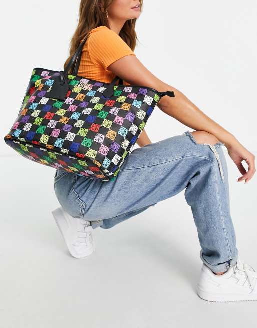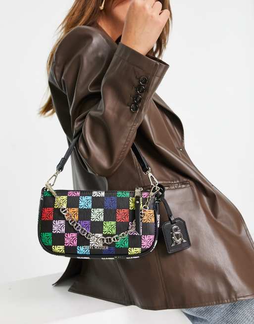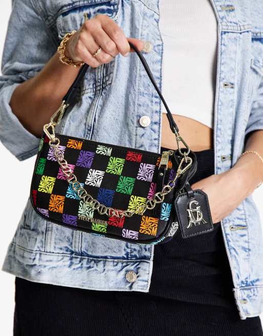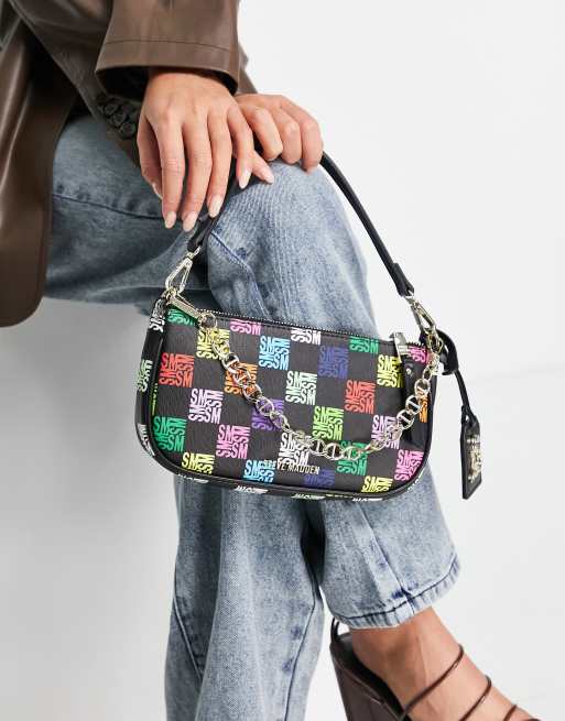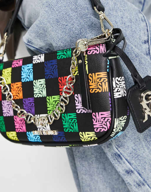 Steve Madden Bsisterl rainbow monogram shoulder bag in black at ASOS.